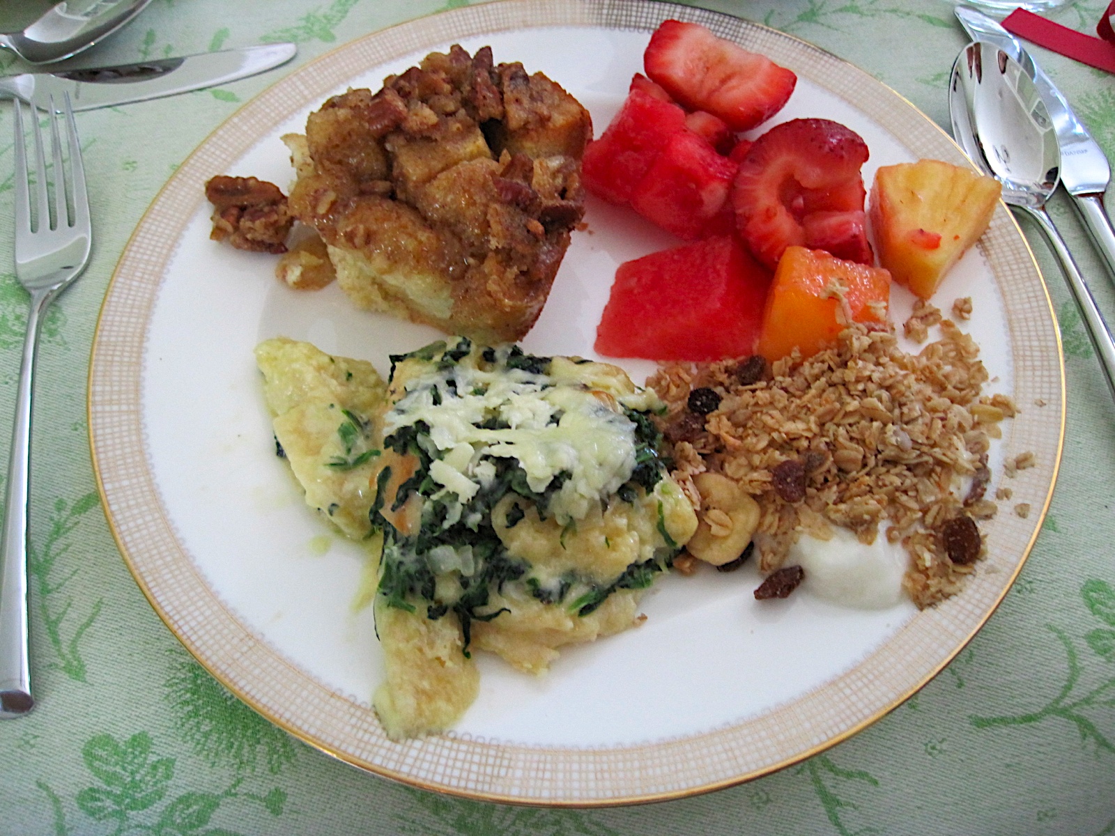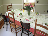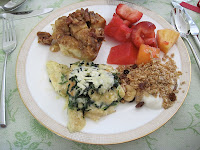 I'm making my friend Lauren's world-class french toast casserole. The best way to describe it is bread pudding crack. It is beyond tasty and Lauren was nice enough to share the recipe with me. Lauren served it at a wedding shower she threw for me earlier in the month. She is truly the hostess with the mostess and I've included a few pictures from the the food she prepared (the french toast crackerole is on the top-left) and the beautiful table she set.  She is so fancy!